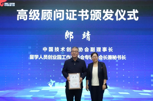 活動現場,中國技術創業協會副理事長、留學人員創業園工作委員會專職副會長兼秘書長郎靖接受聘書,成為丹陽市留學歸國創新創業人士工作委員會高級顧問。